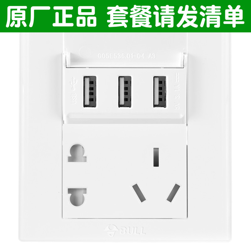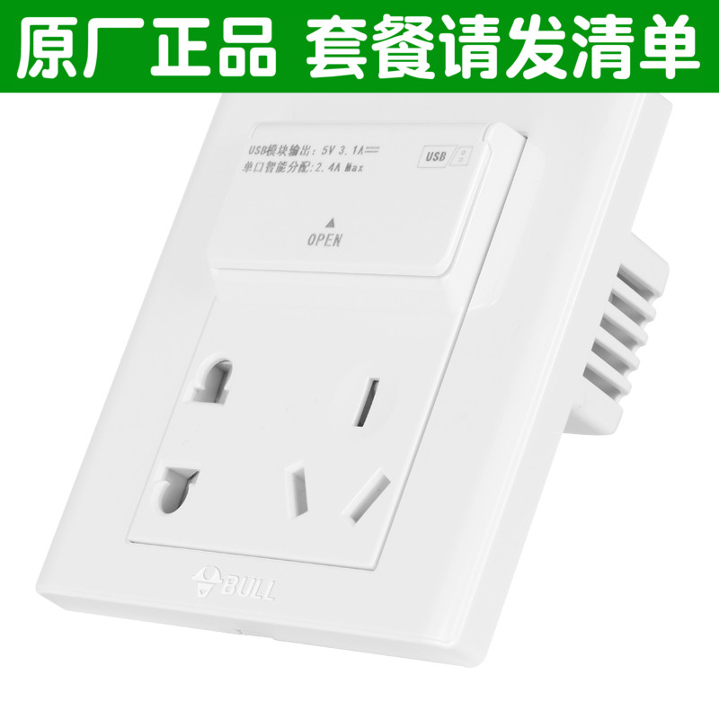 Bull 86 type household two or three eye charging 5 five-hole socket with dual-port usb switch socket panel porous wall
