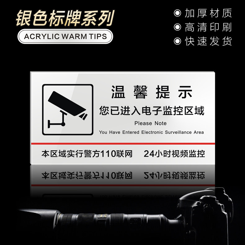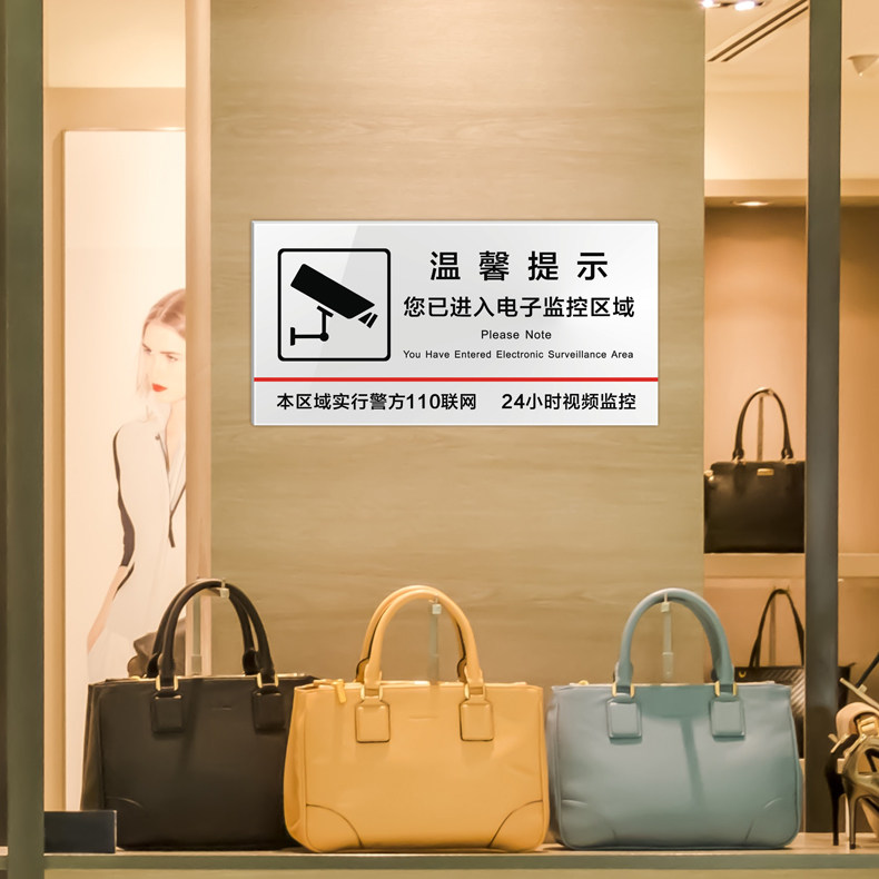 Acrylic you have entered the electronic monitoring area Sweet Cue Cards Wall Sticker this area Police 110 Networking 24 hours Video surveillance warning signs Shops Mall Supermarket Logo-Taobao