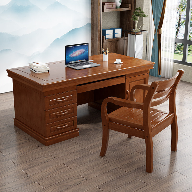 Solid wood staff desk chair combination 1.4 meters office computer desk commercial single workbench boss desk 1.6