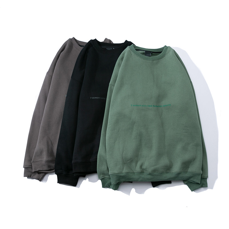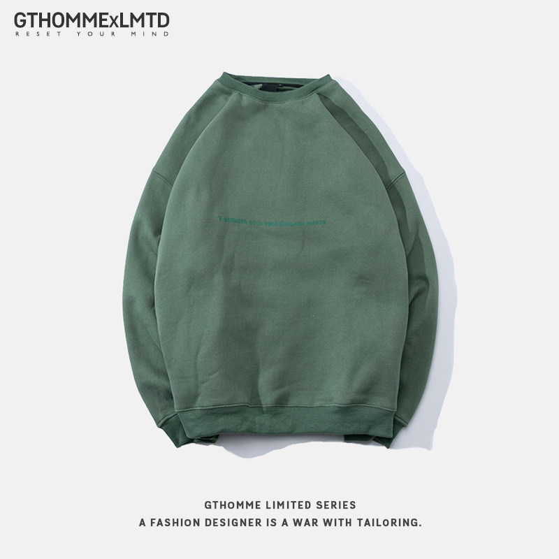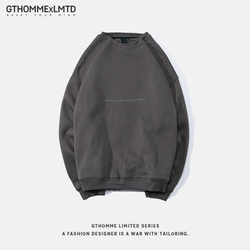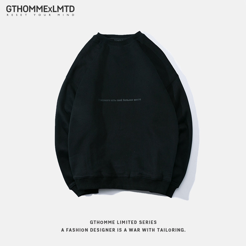 Spring and autumn new men's thick T-shirt round neck pullover loose plus velvet thick Korean version of the trend stacking tide brand long-sleeved jacket