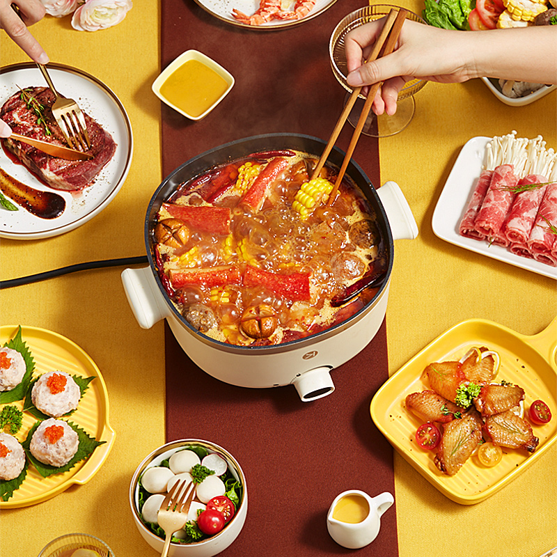 Lijen Electric Hot Pot Pan Quick Cooking Pot Dormitory Small Electric Boiler Home Multifunction Mesh Red Integrated Electric Frying Pan Cooking Noodle Pan