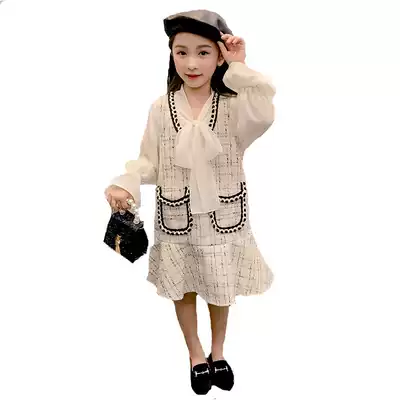 Korean girls spring and autumn suit skirt 2021 new Korean version of the net red little girl chiffon plaid skirt two-piece fashionable