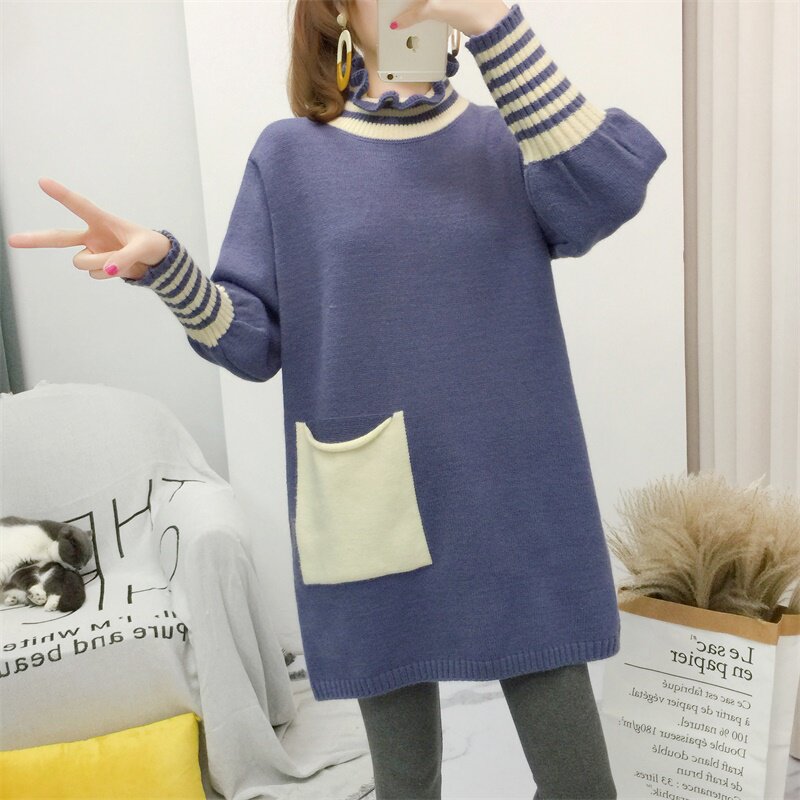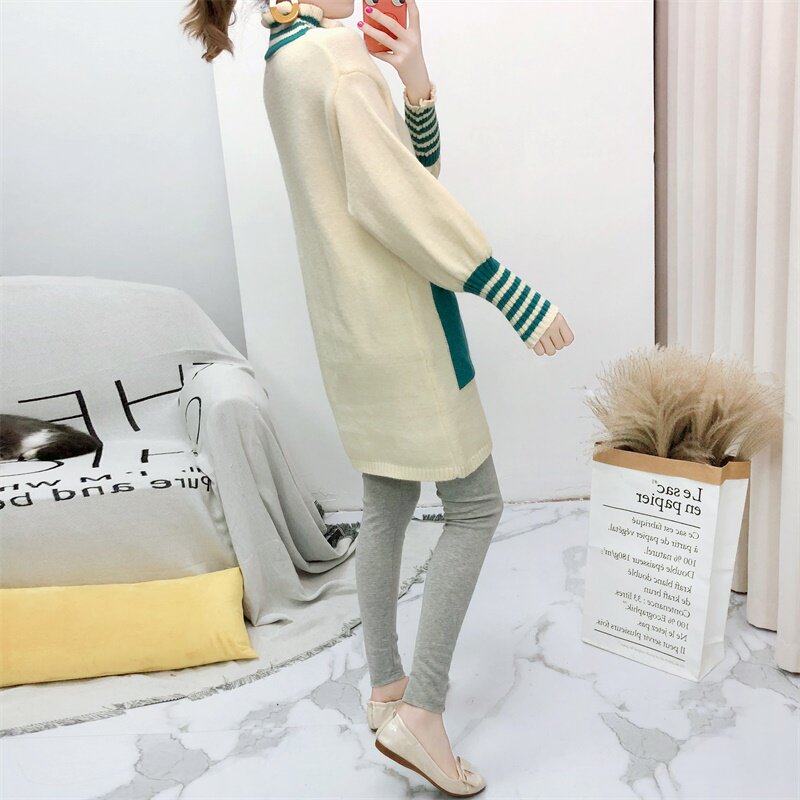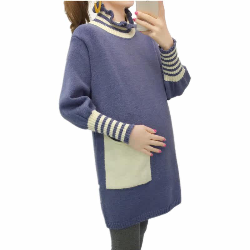 2020 New Gestational Woman Clothing Autumn Clothing Suit Han Edition Brief Knitted Blouse Autumn winter paragraph Long version loose sweater winter