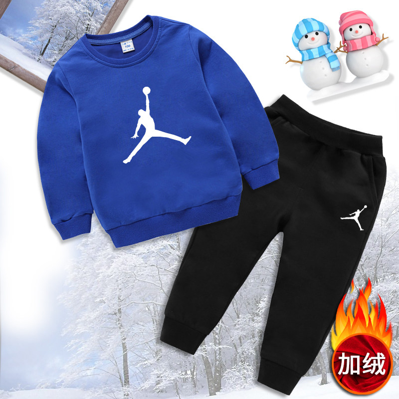 Children and velvet suit autumn and winter new boys and girls warm one velvet sweater sports two-piece cotton