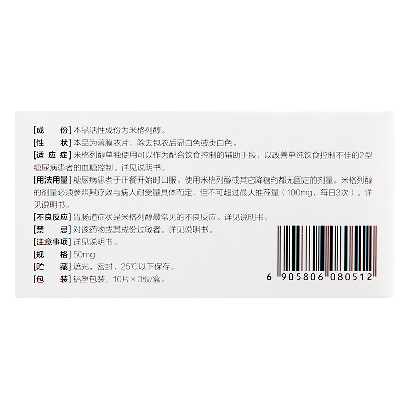 )Laiping Miglitol Tablets 50mg*30 Tablets Box Diabetes Hyperglycemia Hypoglycemic Drugs