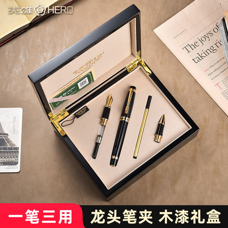 Hero brand pen men's high-end company annual meeting gift gift box set signature pen business metal heavy feel curved tip signature art pen lettering private custom LOGO top ten brands
