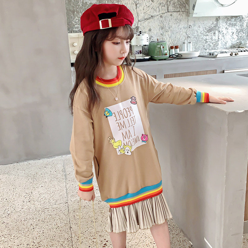 Girl Spring Dress Ocean Dress 2021 New Children Foreign Pie CUHK Girl Girl Splicing Dress Spring Autumn Fashion Thick T-Shirt Dress