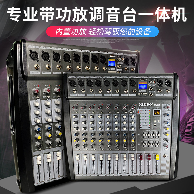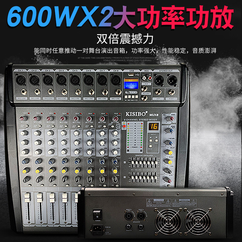 KISIBO Pro Show Wedding Singing Stage Home Bar Equalizer Effect Mixer Show KTV Bluetooth USB High Power Sound Card Audio Mixer with Amplifier All Set