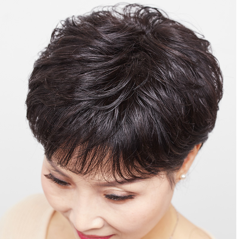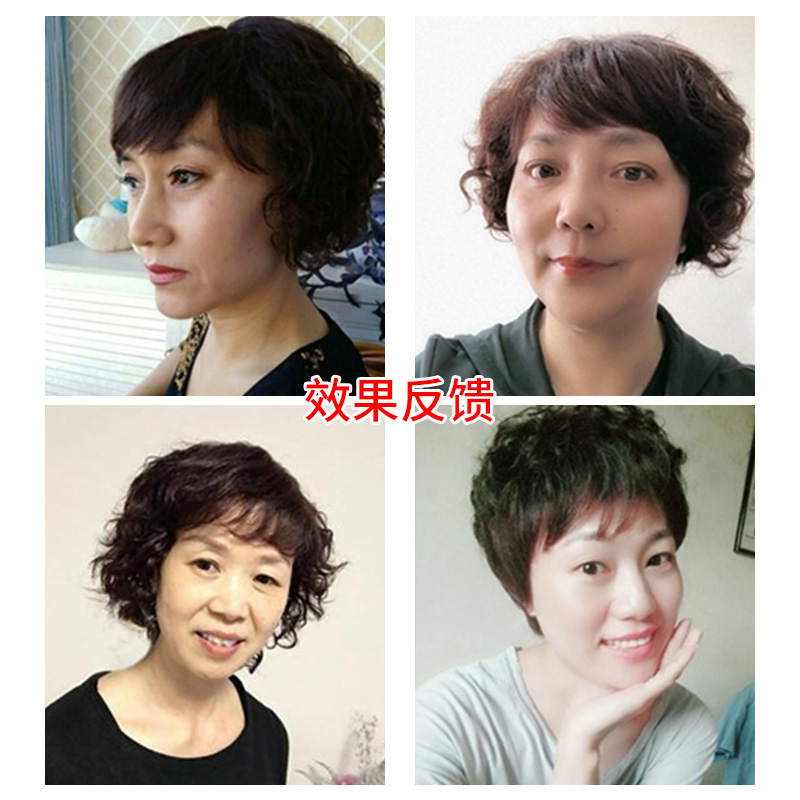 Wig sheet Top of the hair Hair Patch Woman Short Curly Hair Mom's Wig Fashion Textured OLD AND HALF-HEADGEAR IN REAL HAIR.