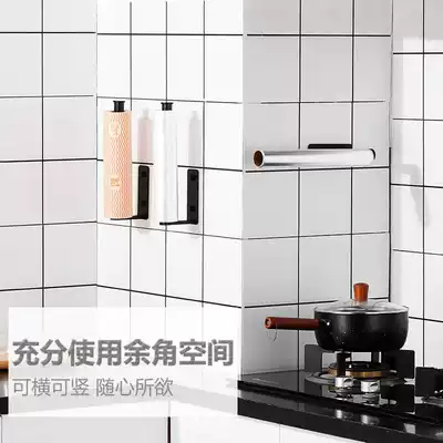 Kitchen paper towel rack non-perforated multifunctional creative tissue rack wall-mounted space aluminum cling film shelf