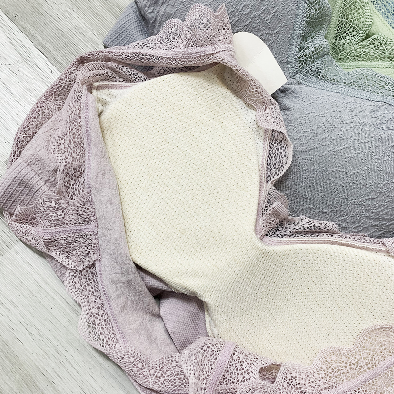 Foreign trade export leak latex lace underwear women's big breasts show small gathered without steel ring sports beautiful back bra thin