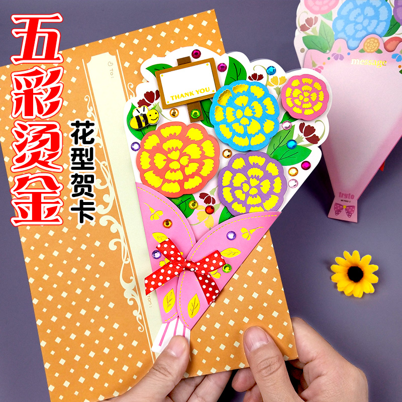 Bronzing multicolored flower shape handmade diy greeting card 1 card 1 envelope 6-in-1 thanksgiving Handmade diy greeting card 6 card 6 envelope 6-in-1 thanksgiving coloring greeting card 6 card 6 envelope large 3D three-dimensional love
