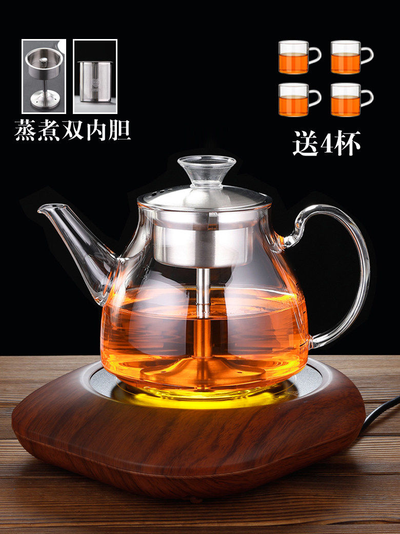 Steam Teapot Boiled Tea Ware Glass Tea Set Black Crystal Stove Home Fully Automatic Boiling Kettle Health Care Suit Black Tea Boiling Teapot