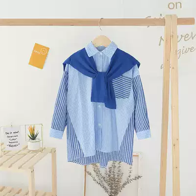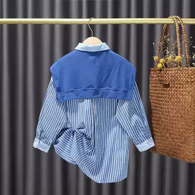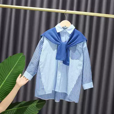Zhongdai girl shirt long sleeve 2021 spring new children Foreign style striped shirt college style shirt dress tide