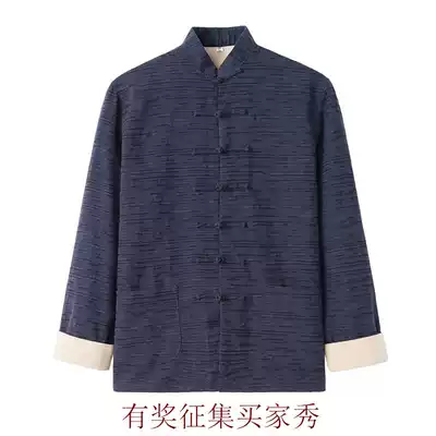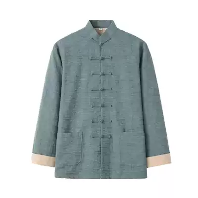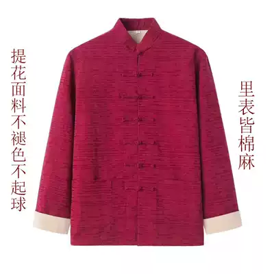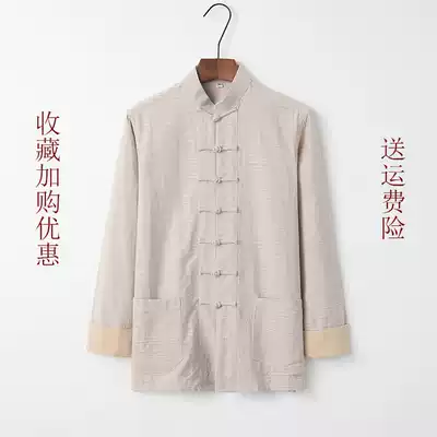 Elderly Tang suit men's long-sleeved cotton and linen grandpa autumn jacket Chinese plate buckle top Chinese style retro lay suit