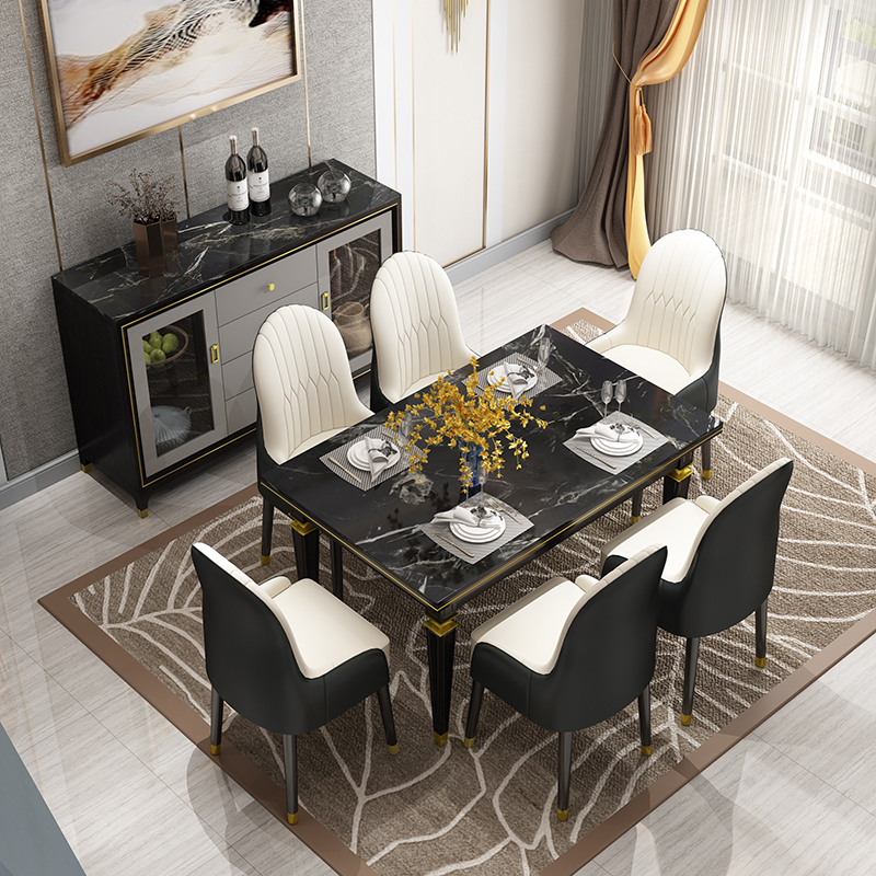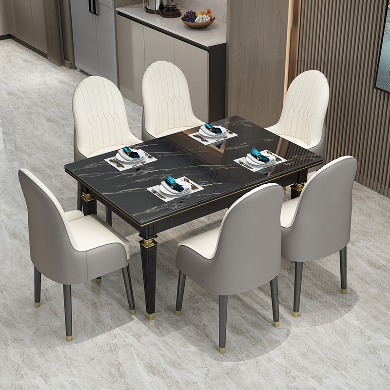 American light luxury marble dining table solid wood dining table new Chinese dining room modern minimalist home dining table combination