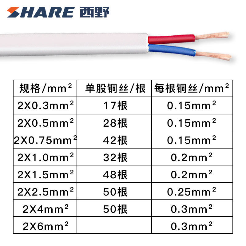 Xino (SHARE) Two-core RVV multi-strand soft jacket wire 100 m white copper core power signal transmission line