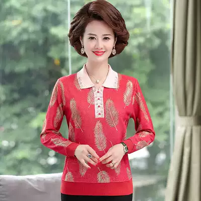 Mom's early autumn two-piece Western style suit Middle-aged and elderly women's autumn long-sleeved inner jacket Middle-aged women's lapel top