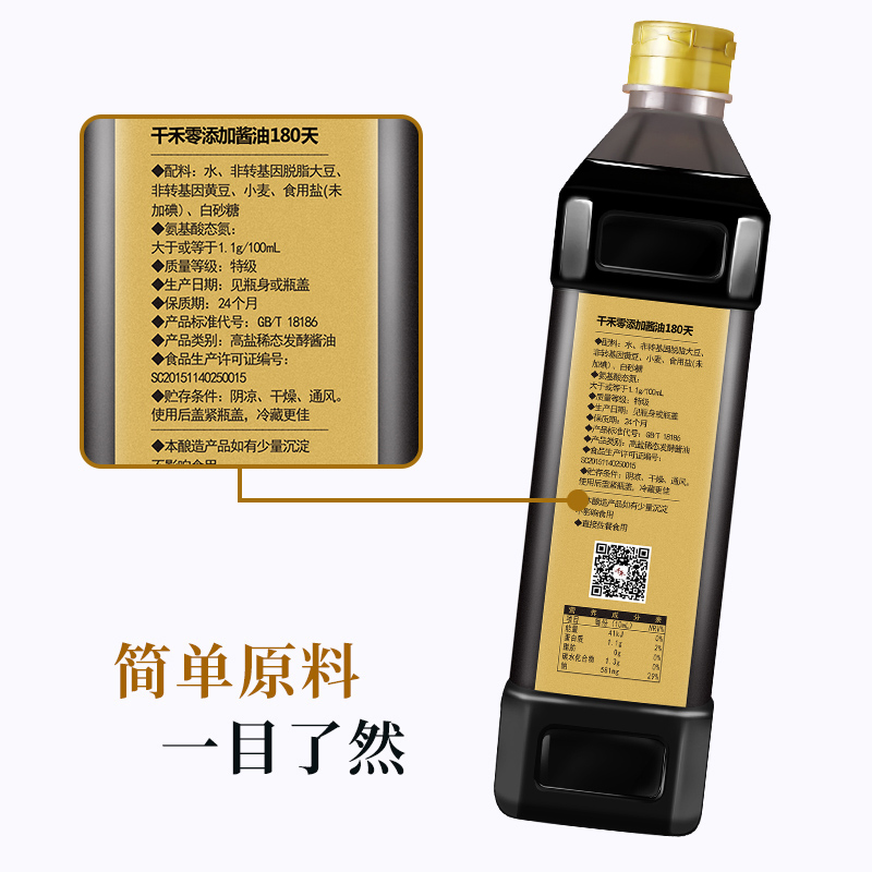 (one thousand and _ soy sauce) 180-day special grade raw pumping 1L non-genetically modified condiment to cool and stir fry