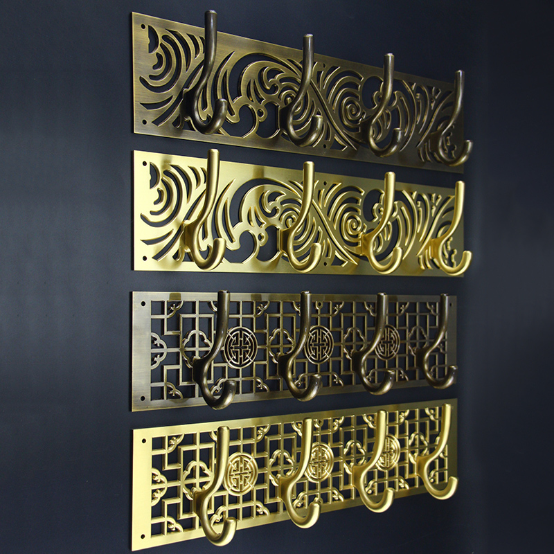 Row-style new Chinese-style pure copper coat hook solid hat hook Chinese-style flower lattice Wanli Jintao cabinet interior hallway retro wall hook