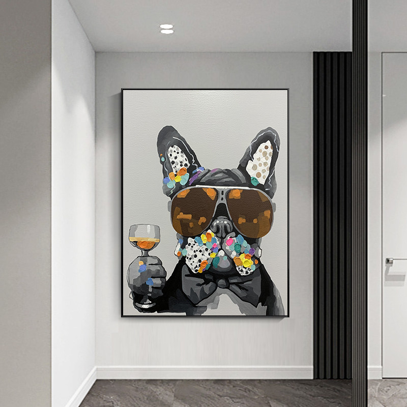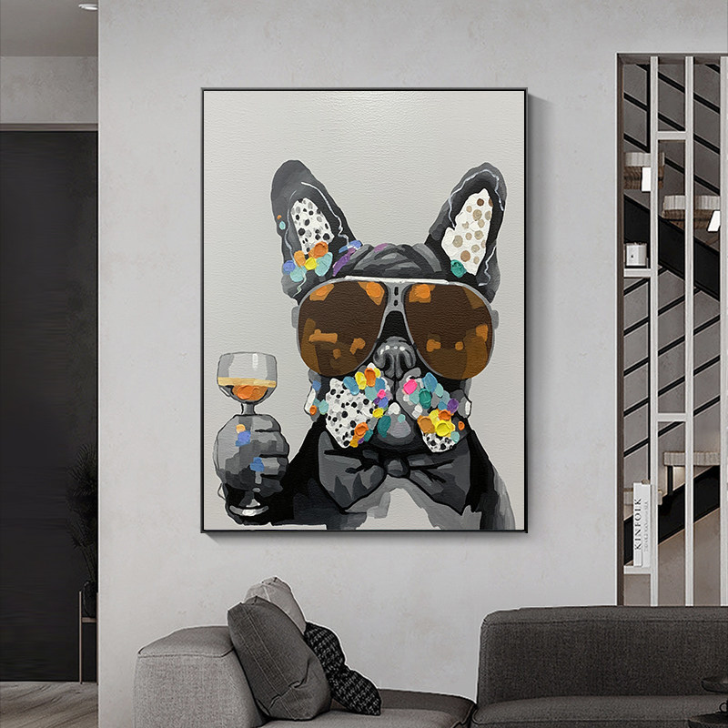 Pure Hand Painted Oil Painting Animals Zodiac Hung Paintings Cute Dogs Decoration Painting Children's Room Bedrooms Frescoes into the family Guan Americana-Taobao