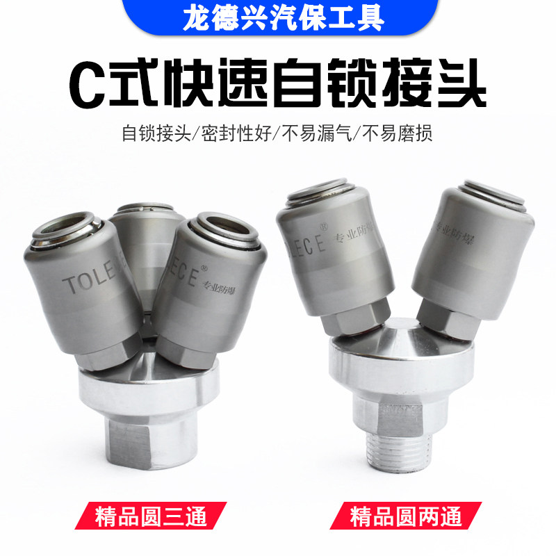 Pneumatic C-type self-locking quick connector PU trachea round three-way two-way plug claw tool pump air compressor quick plug