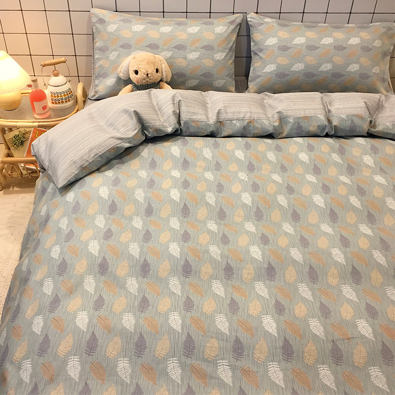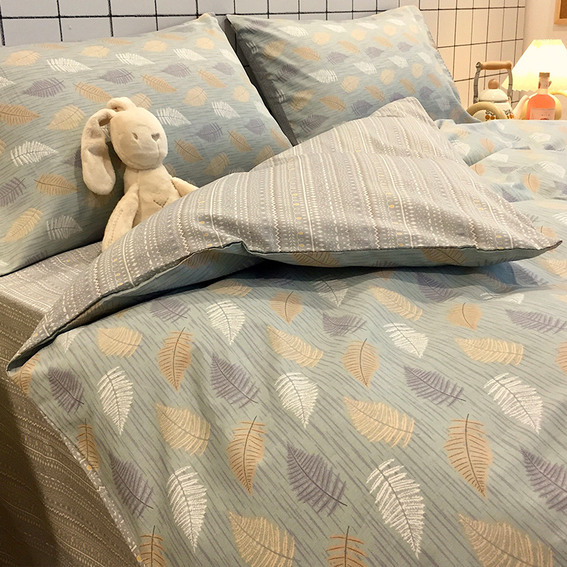 Korean-style pastoral ins cotton four-piece bed set simple modern cotton three-piece gray feather bed sheet duvet cover 4