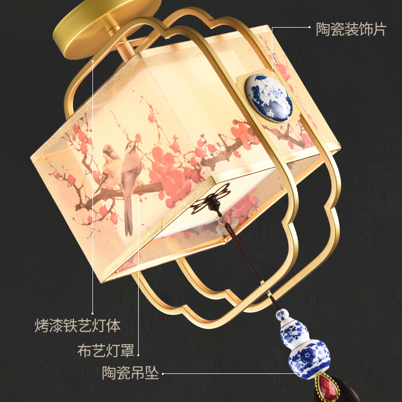 New Chinese-style corridor Decoration Xuanguan Walking Road Light Suction lamp Balcony China Wind Light With Single Head Green Flower Zen small lamp