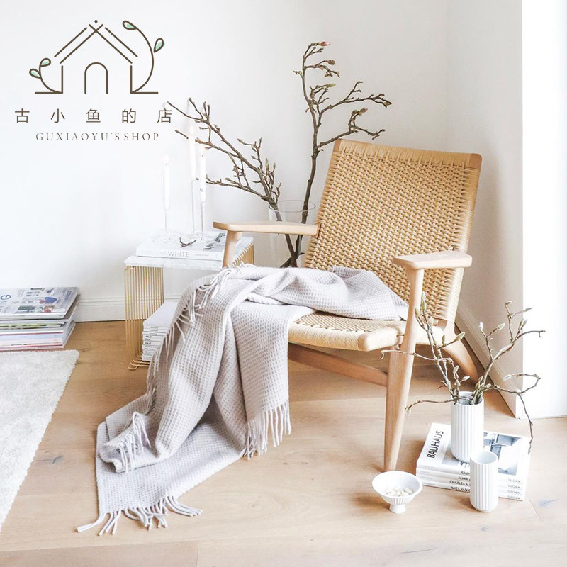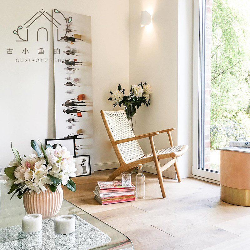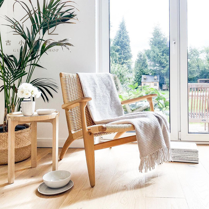 Ancient small fish lazy sofa chair solid wood home stay leisure rattan chair Japanese single designer chair CH25 rattan chair