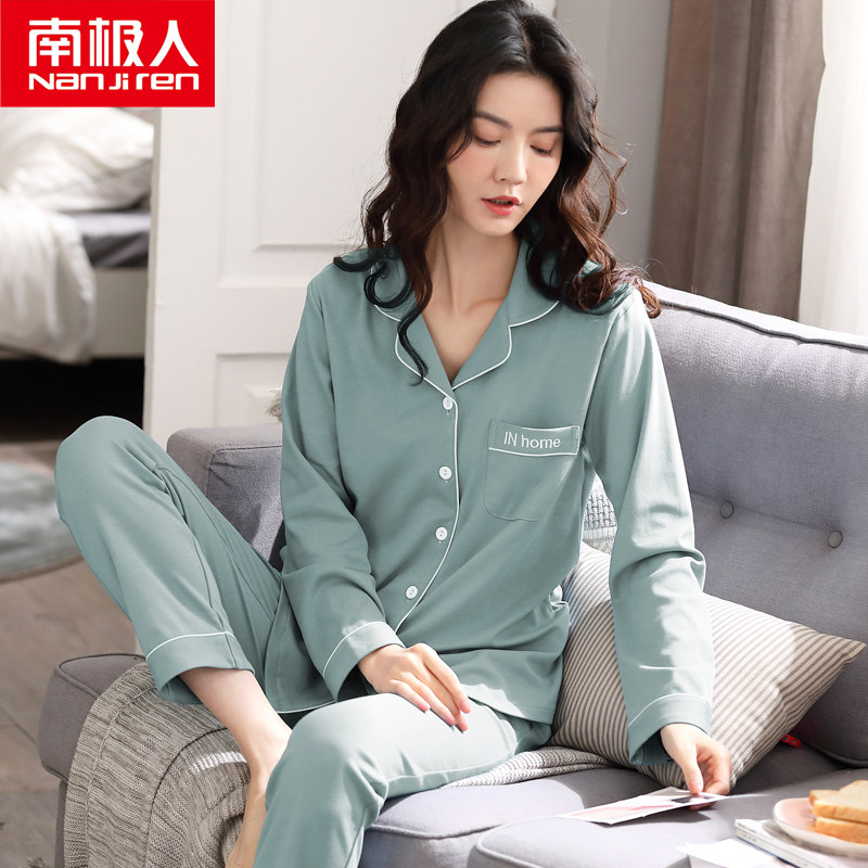 South Pole National People's Congress Size Pyjamas 200 Jin Spring Autumn Pure Cotton Long Sleeve Pure color Home Lady Full Cotton Loose Suit