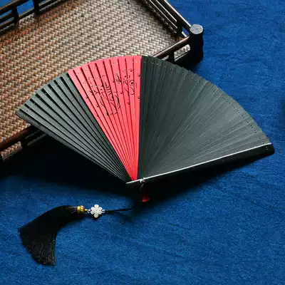 Japanese style Chinese style whole bamboo fan folding fan hollow ancient style male female folding fan handmade small 5 inch dance fan Black