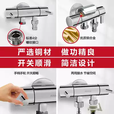 Wrigley three-way angle valve One-in-two-out triangle valve Double switch Double faucet water separator Household water valve switch