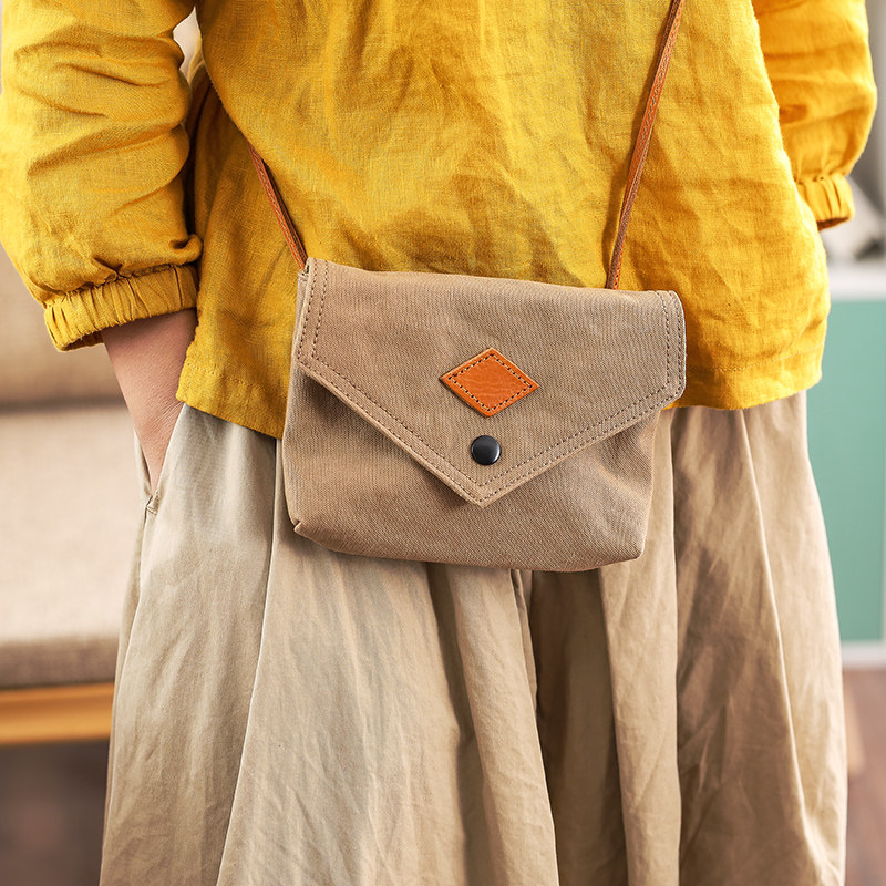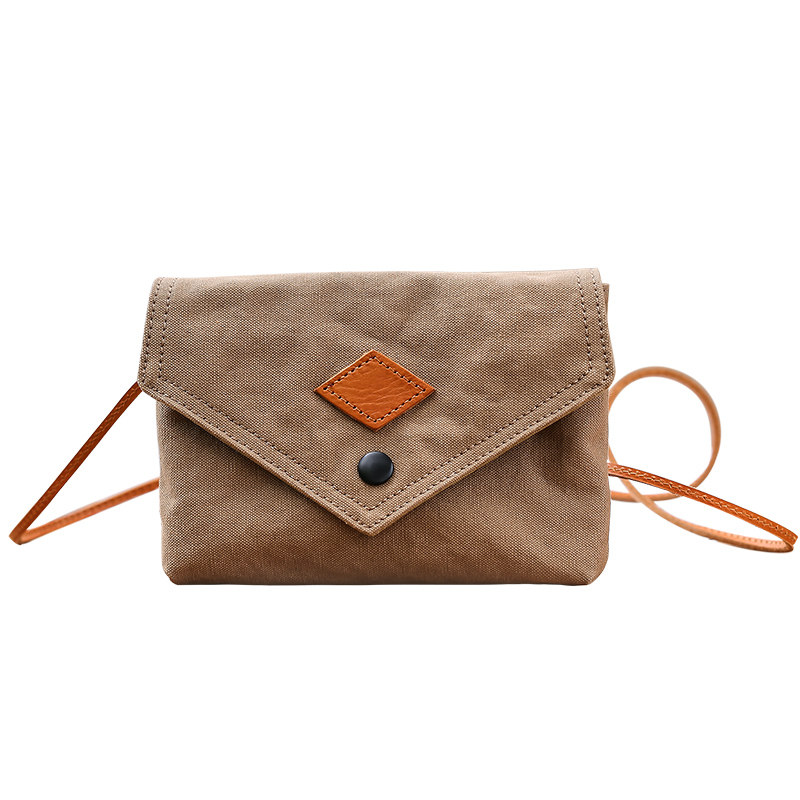 Xiaosheng has rice bag women's canvas shoulder bag simple literary envelope small square bag retro wash messenger phone bag - Taobao