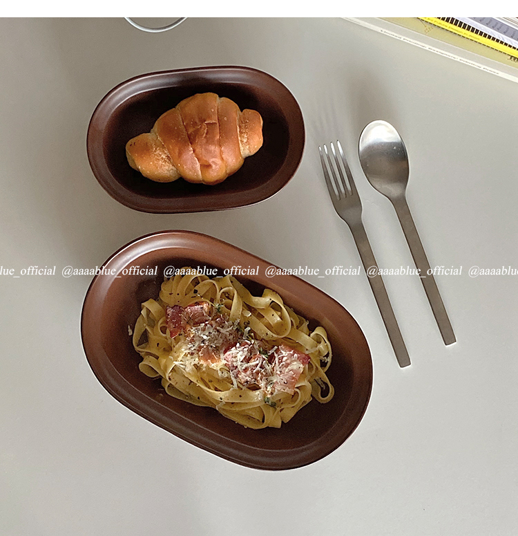 French retro oval soup plate matte ceramic deep plate solid color pasta plate salad plate one person eating tableware elliptical disc