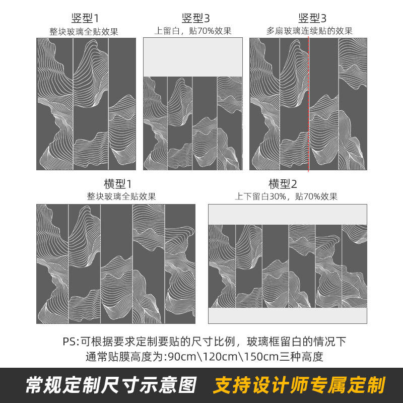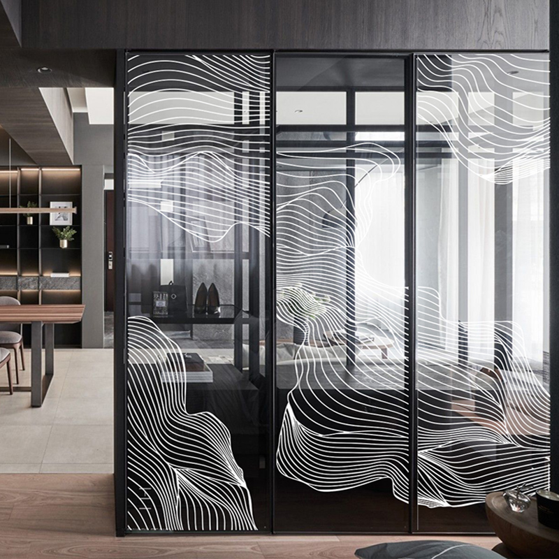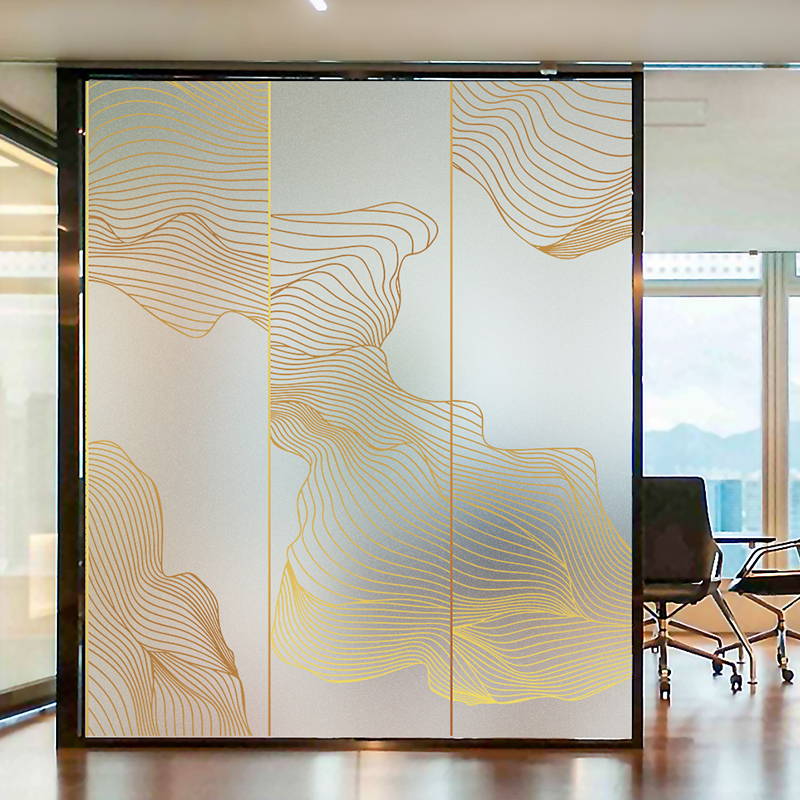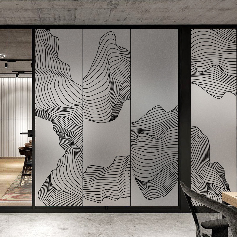 Modern New Chinese Art Abstract Landscape Painting Office Frosted Glass Adhesive Film Static Sticker Pattern Custom