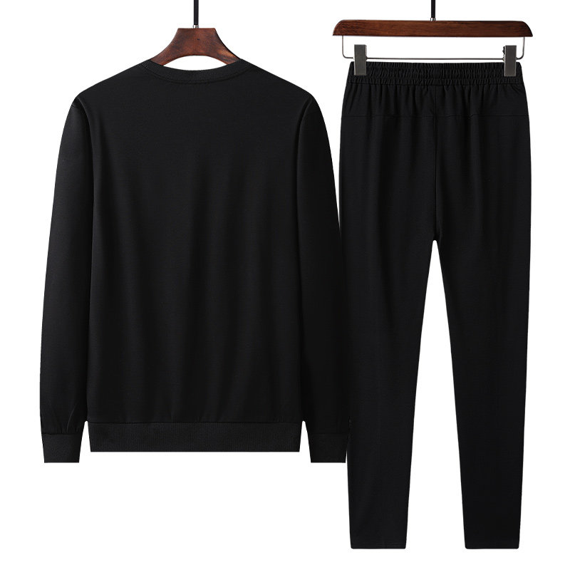 Black Closed Sweater Suit Black Drawstring Pants Black Thick Cotton T Black Flat Sweater Suit