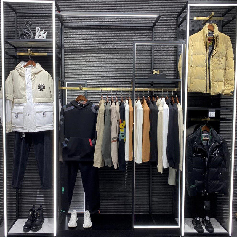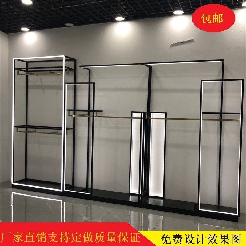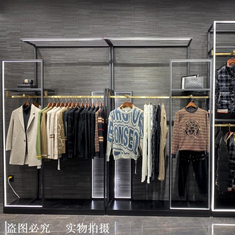 Clothing store shelves floorstanding display shelves with lights hanging hangers men's and women's clothing stores in the island cabinet hanging clothes rack wrought iron