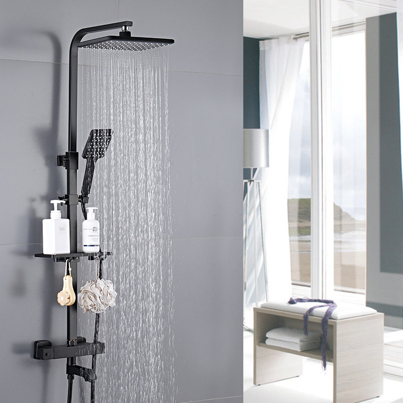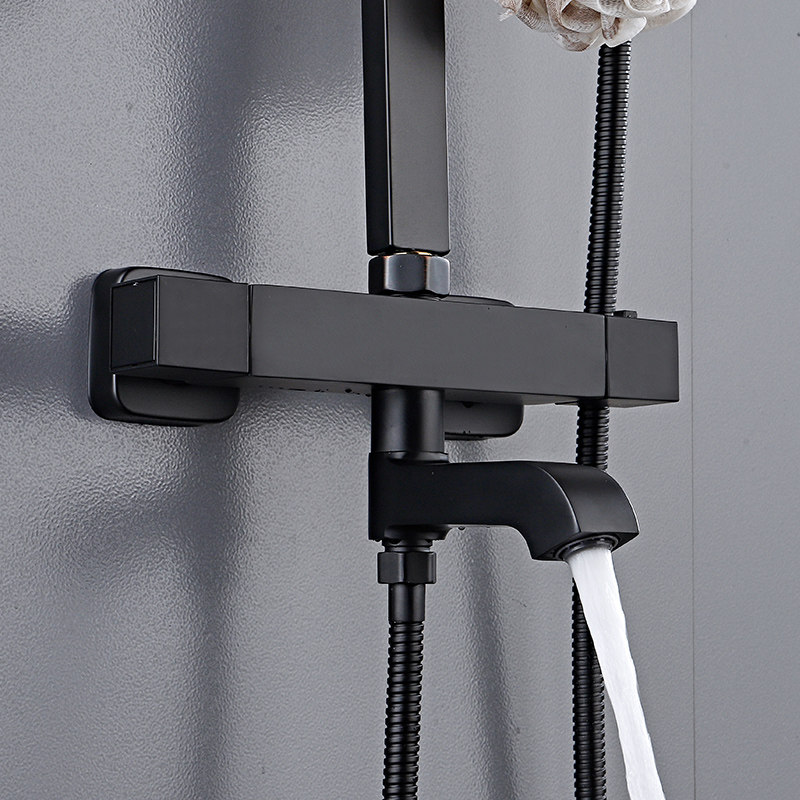 Shower shower kit home full copper bathroom shower rain booster nozzle black constant temperature flower