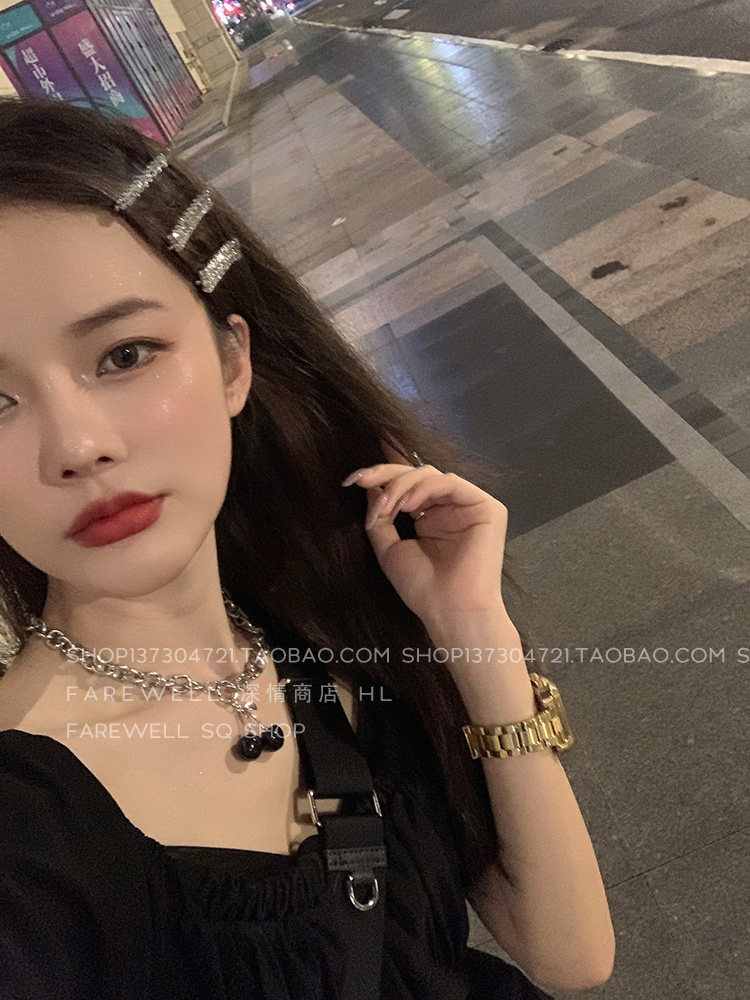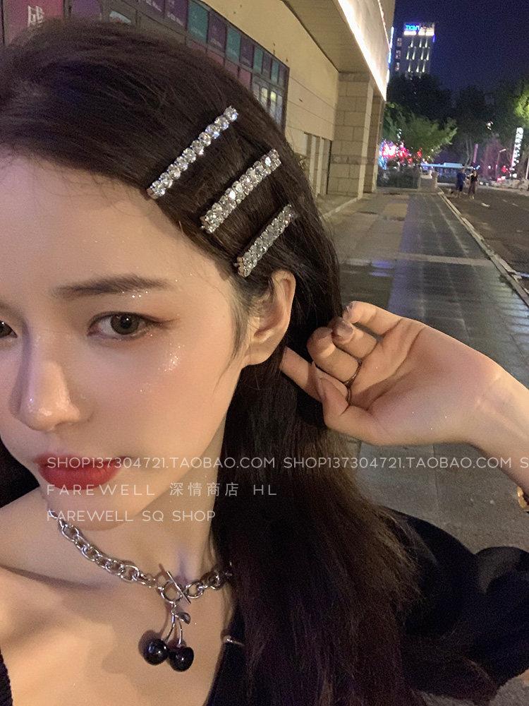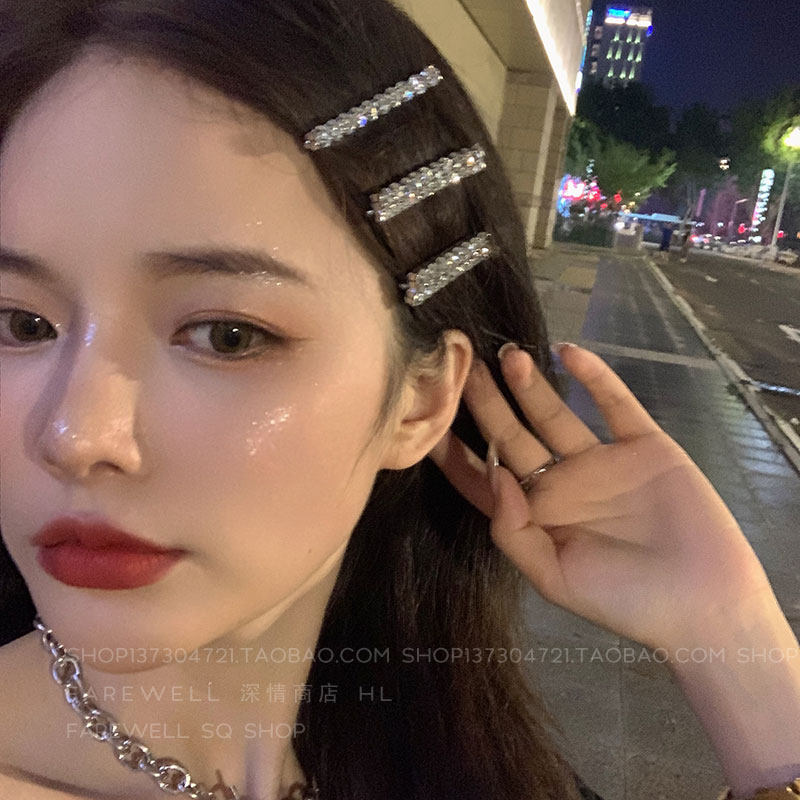 Three-piece set ~ sweet and cool super flash rhinestone hairpin female Korean ins hairpin bangs clip headgear net red card word clip