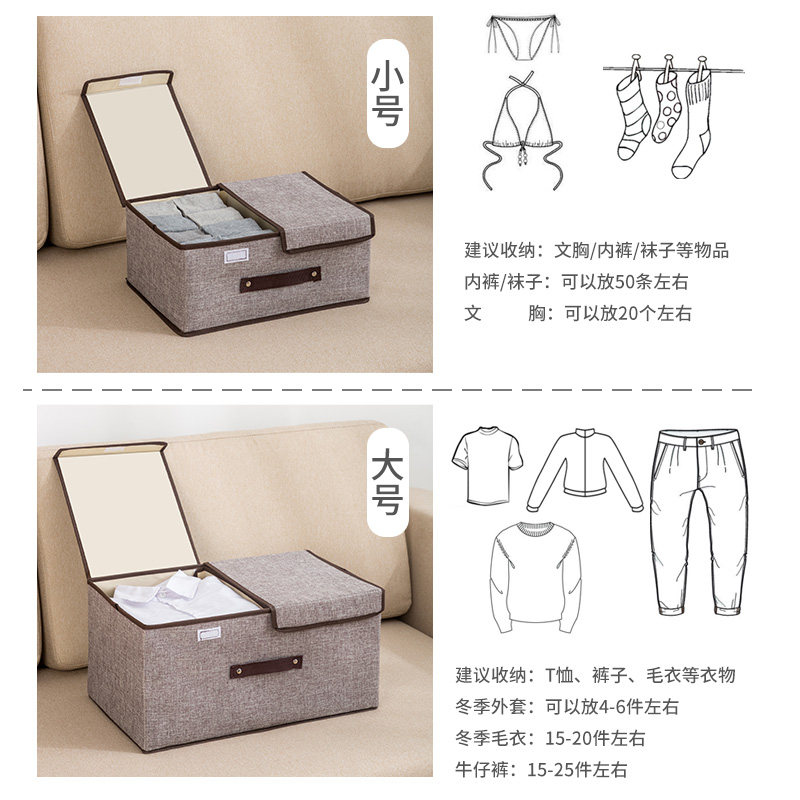Clothing Storage Box Cloth Art Cotton Linen Finishing Box Home Underwear Storage Box Large Number Foldable Clothing Sorting Box-Taobao