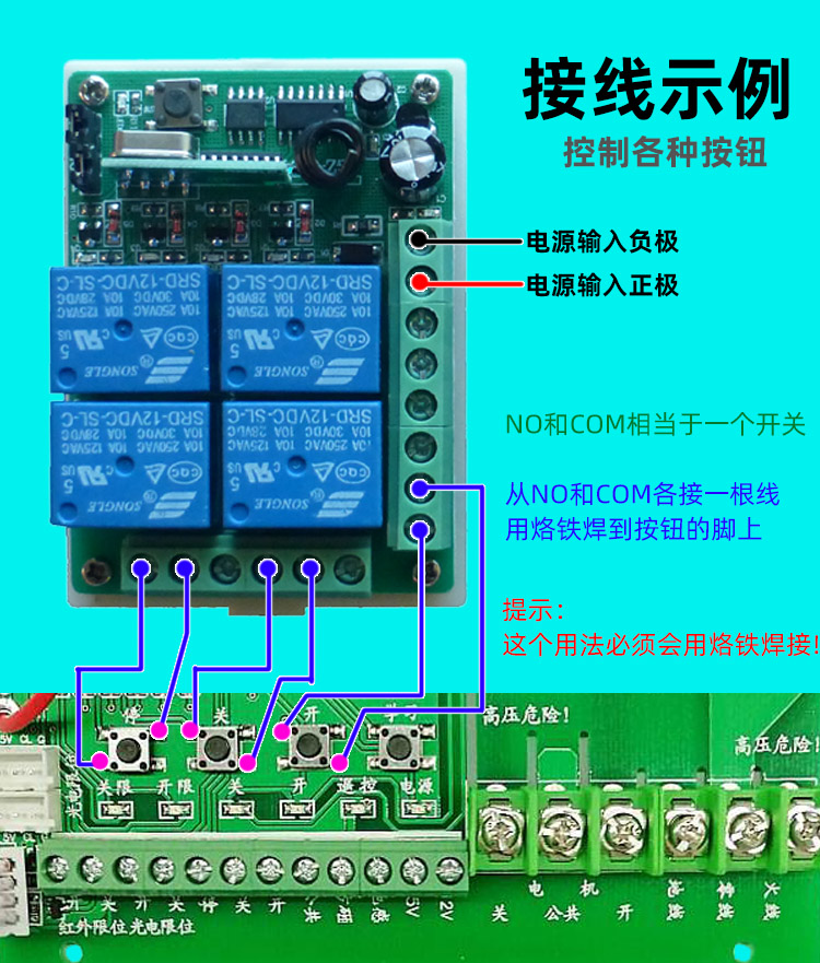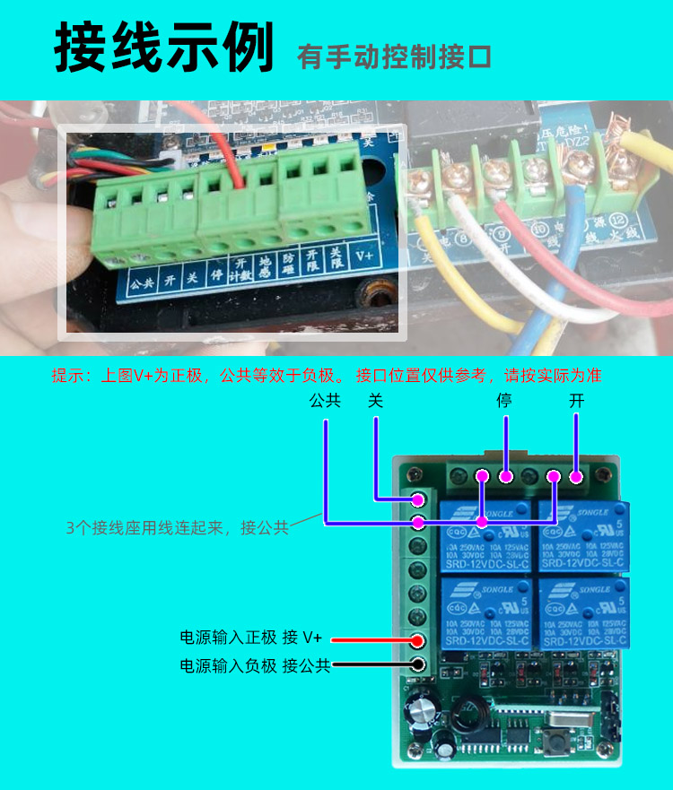 3-way wireless switch module garage remote control fence machine wagon tailboard motor flip-stop manual button 12V24V