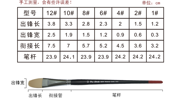 USA artist brand nylon hair hazel line Oil painting pen Acrylic pen Watercolor pen long rod semicircular head 101FR