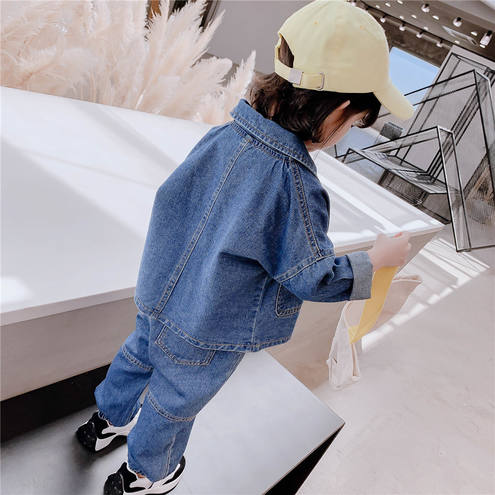 Girl's tennis red suit 2021 new Korean version Jeans Tooling Children Spring Dress Women's Baby Chic Two Sets