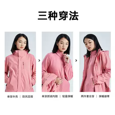 Outdoor Chinese red stormtrooper men's three-in-one detachable windproof and waterproof two-piece women's jacket tide brand clothing