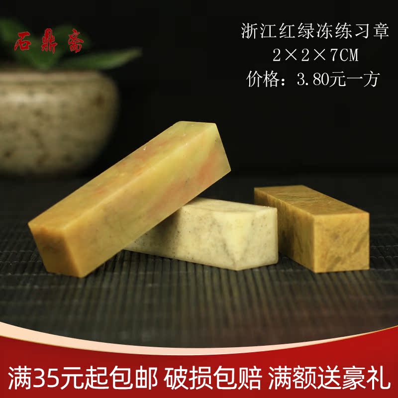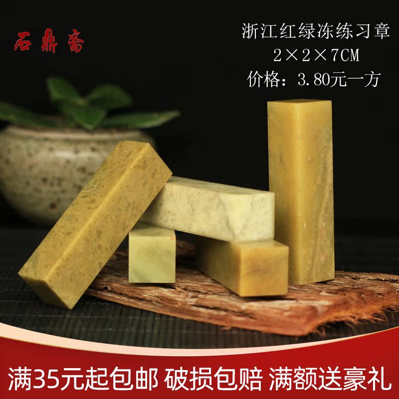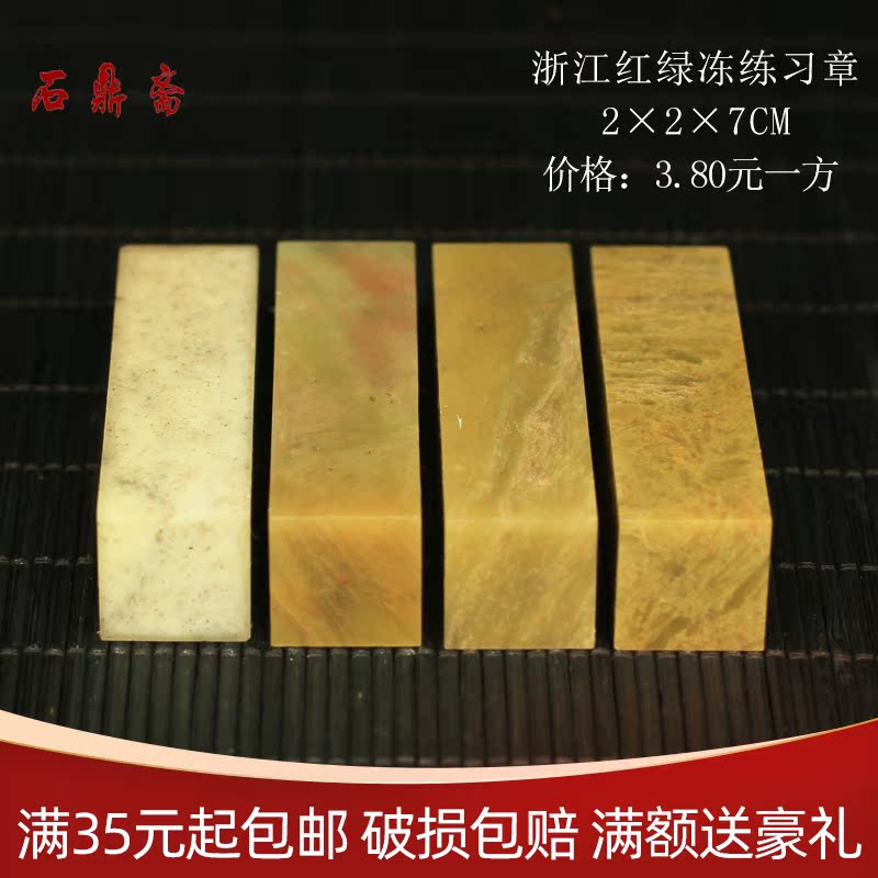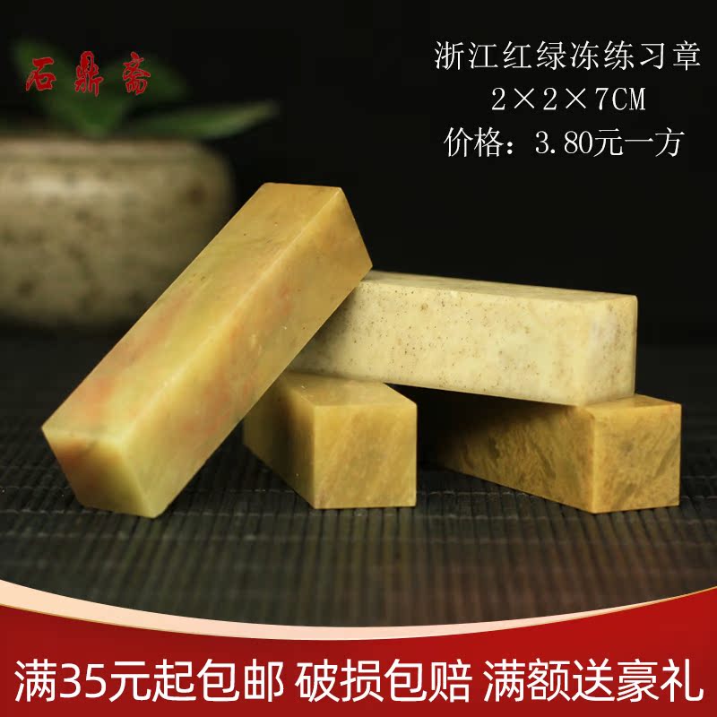 Zhejiang red and green Frozen 2*2 * 7CM seal stone carving Shoushan stone practice seal calligraphy and painting