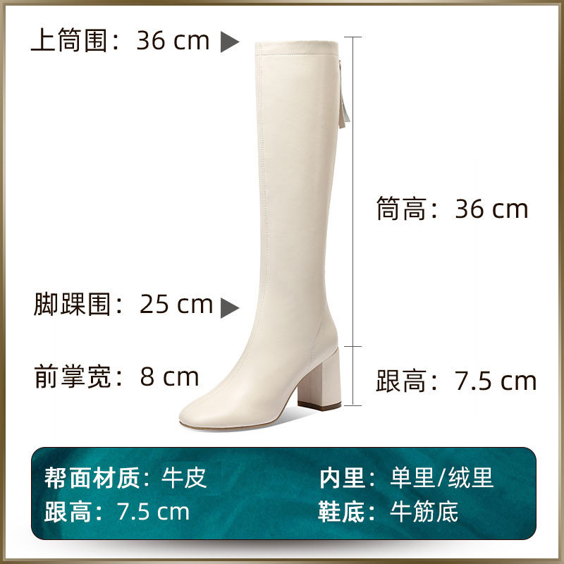 White long boots woman 2021 autumn winter new high heel riding boots leather boots genuine leather high cylinder boots slim long drum boot boots