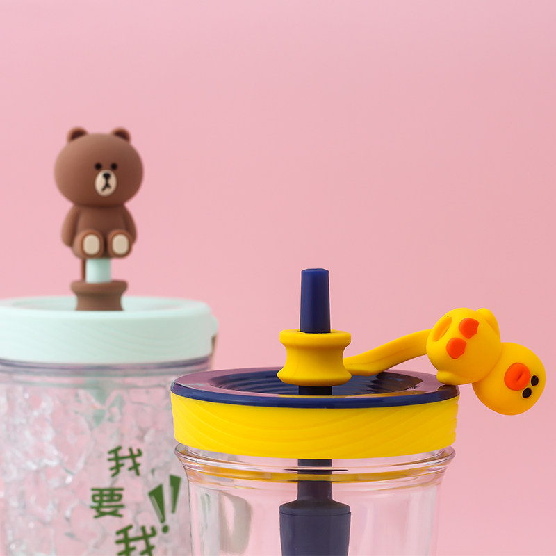 Straw set Cold brew cup dust cover Large mouth dust doll straw cup can be used net red cute environmental protection silicone cover