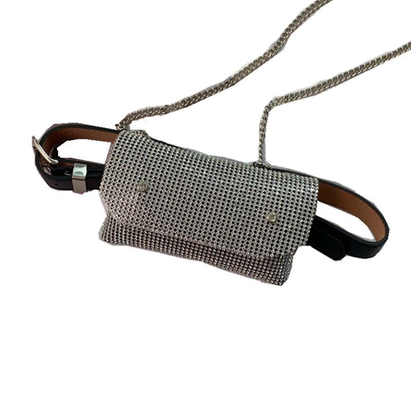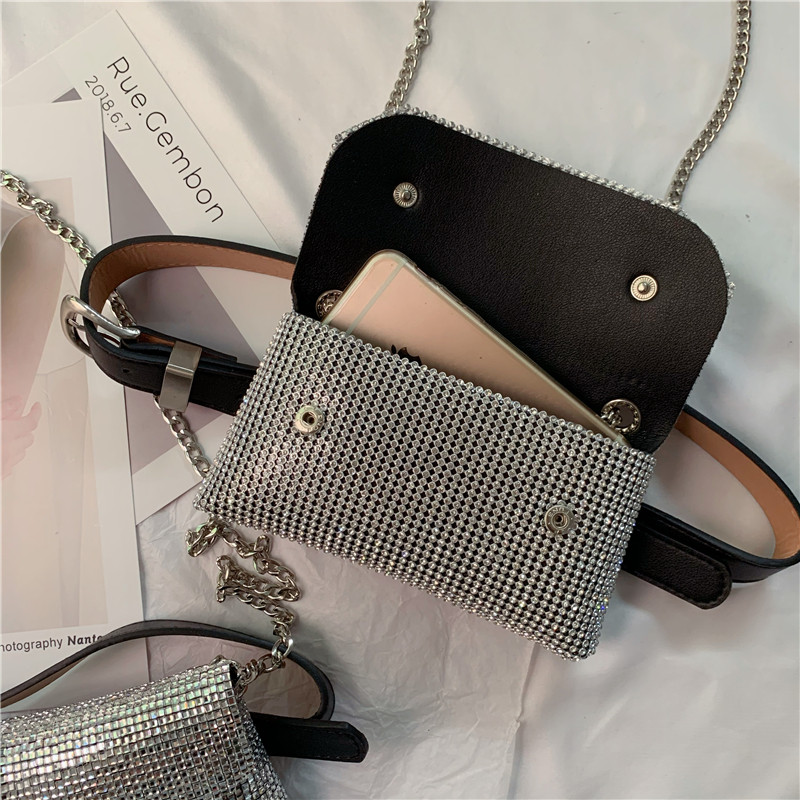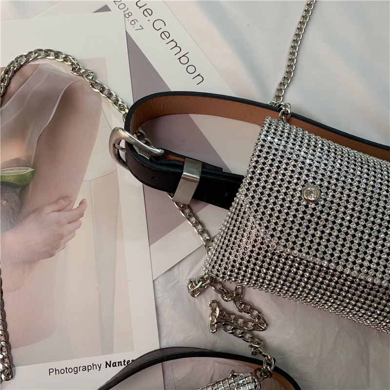 Personality flash drilling inlaid with purse ins2020 Korean version of new inclined cross detachable belt female 100 lap strap hanging bag tide