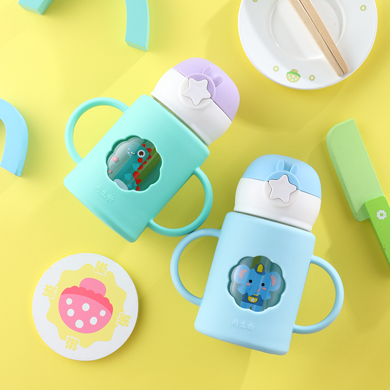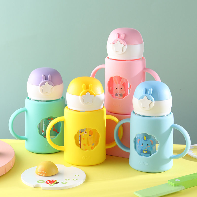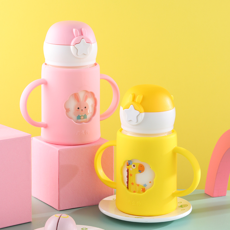 Children's milk cup with scale double handle anti-fall powdered milk special for microwave baby to drink milk glass straw cup