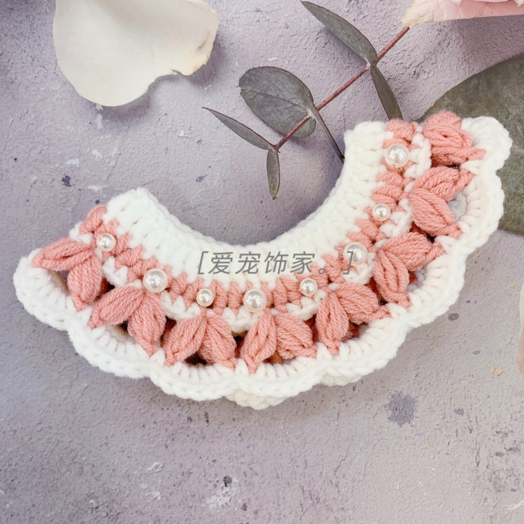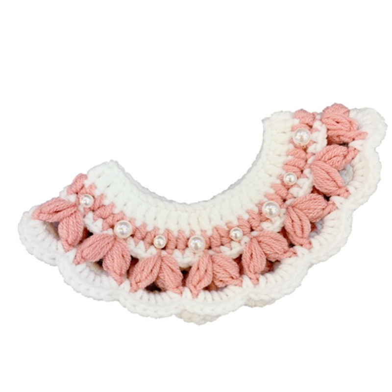 Wool knitting diy cat bib love pearl lace cute pet dog collar bib photo decoration